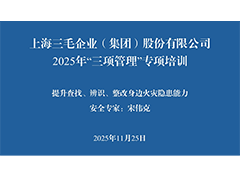 11月25日下午,上海三毛组织召开了2025年“三项管理”专项培训,邀请了安全专家宋伟克作了“提升查找、辨识、整改身边火灾隐患能力”的培训授课。集团党政领导、所属企业党组织书记、总经理、分管安全工作负责人、安全专兼职干部以及本部全体员工参加了培训。安全专家结合2025年“119消防宣传月”主题,介绍了当前国内安全生产的总体态势,分析了制约安全生产、用火用电、消防…